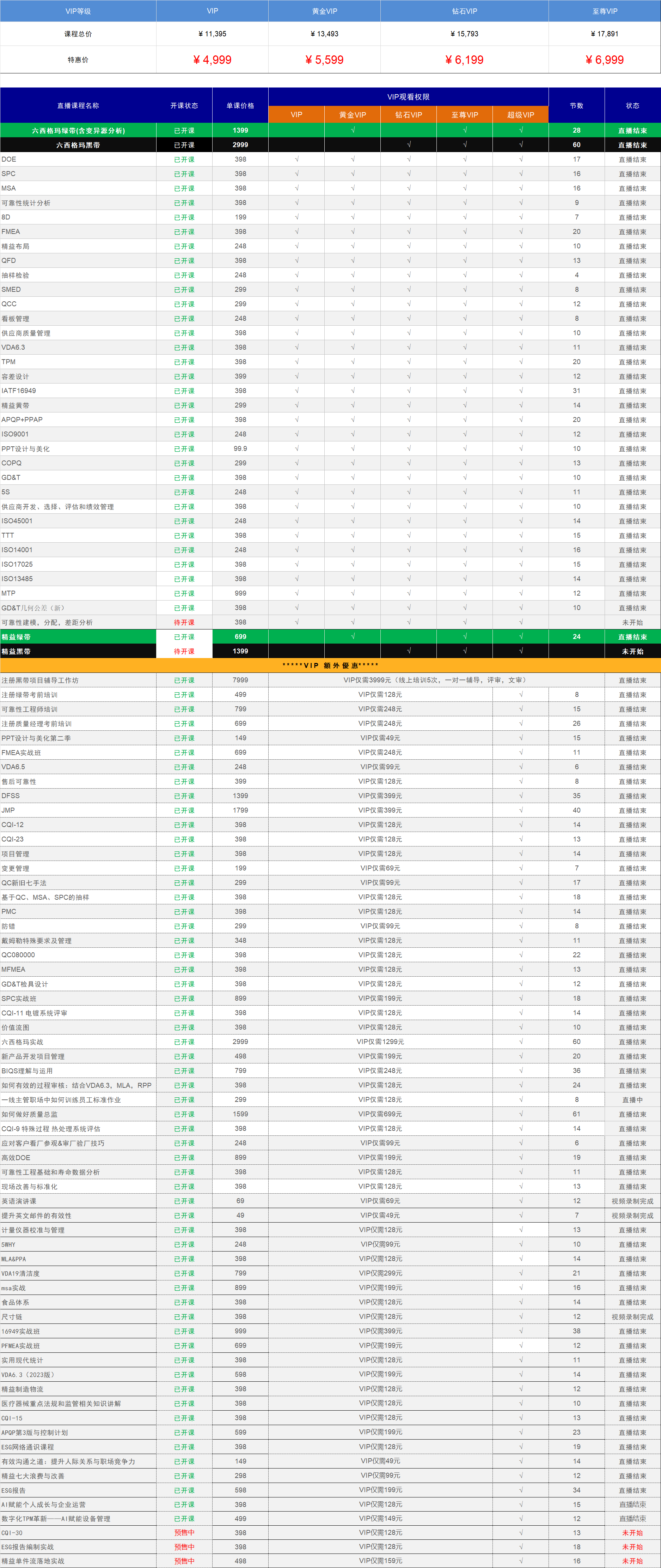 针对不同预算及需求,目前共计四款VIP档位,对应的课程清单,详见下方表单。